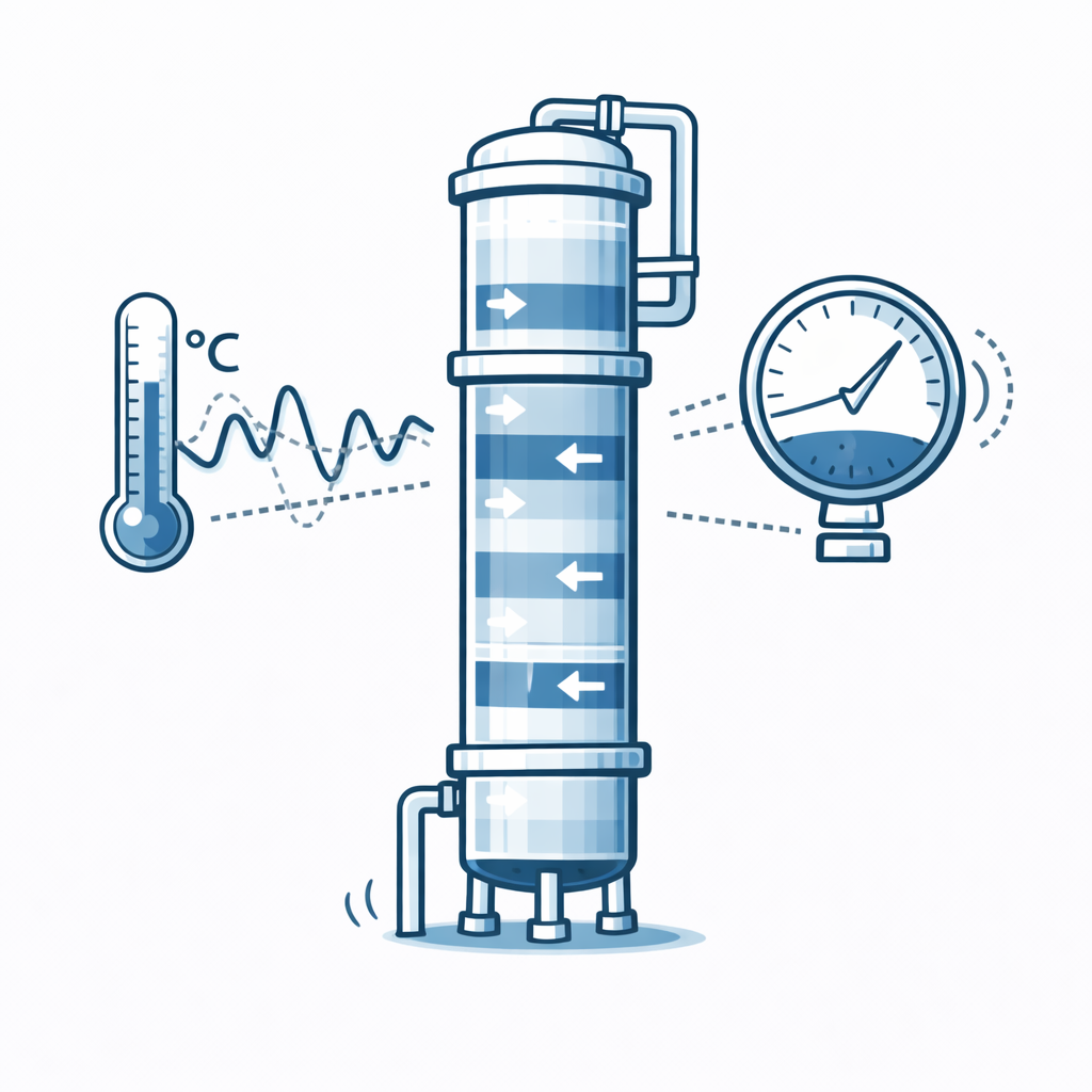 Column instability may appear as fluctuating nitrogen purity, unstable reflux control, or pressure oscillations.